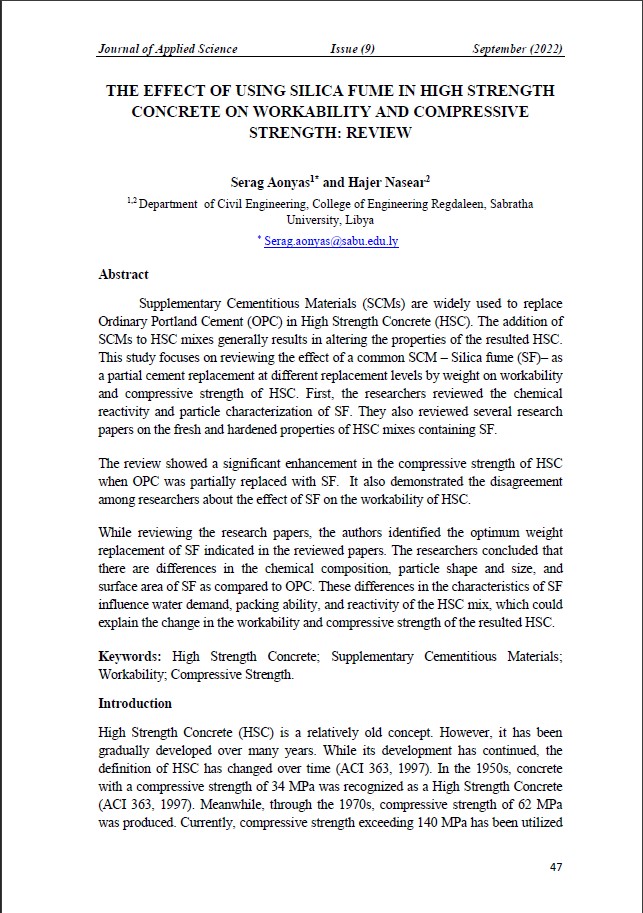 THE EFFECT OF USING SILICA FUME IN HIGH STRENGTH CONCRETE ON WORKABILITY AND COMPRESSIVE STRENGTH: REVIEW